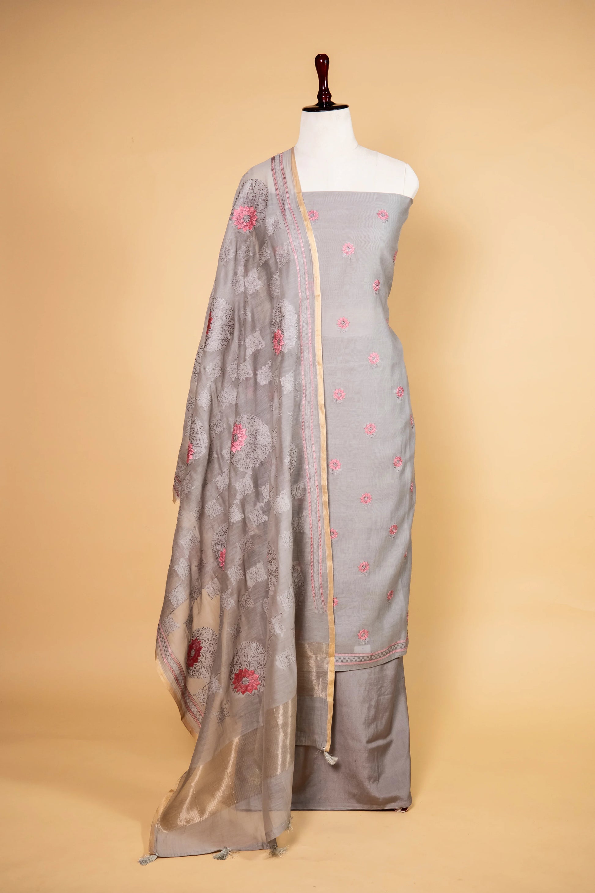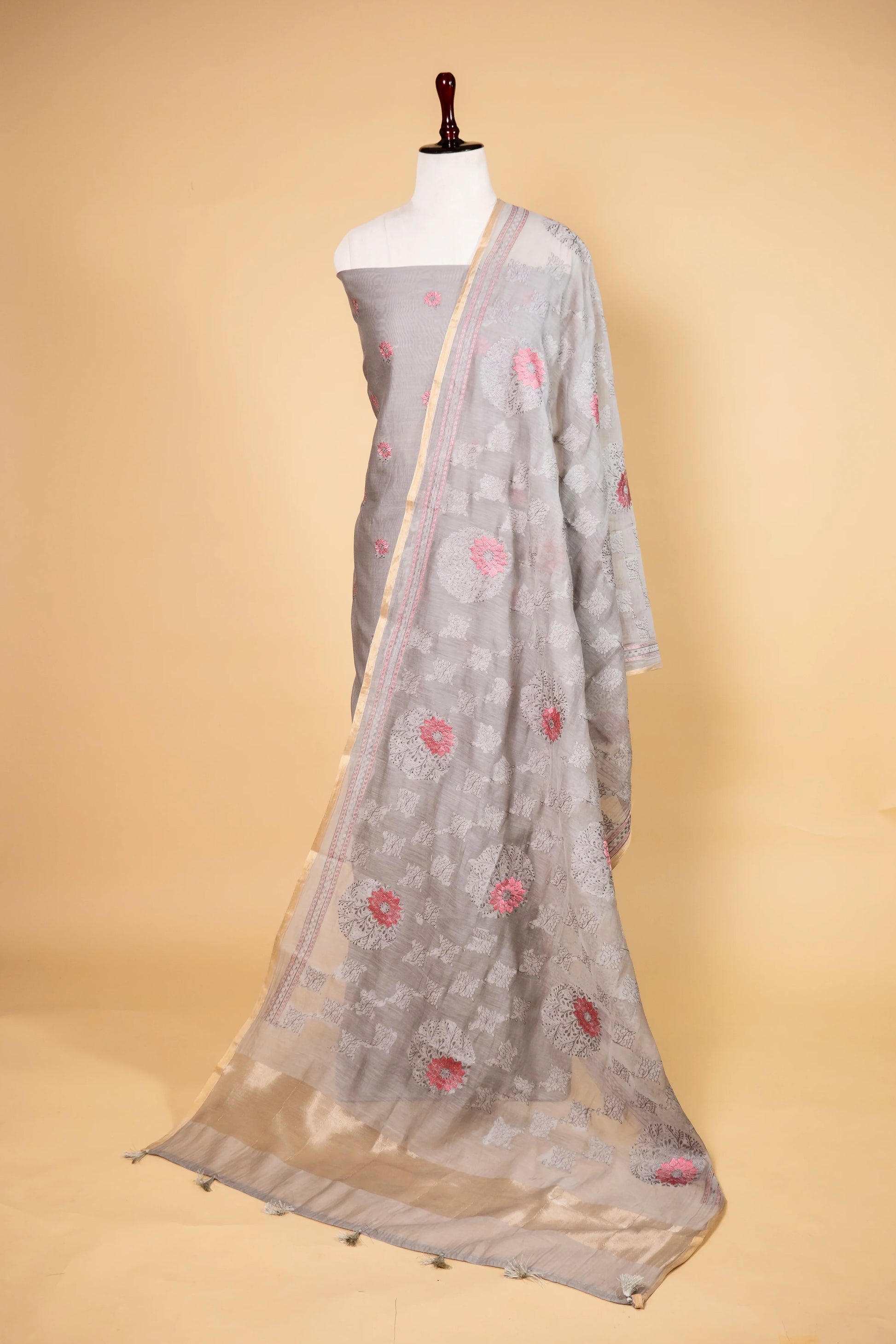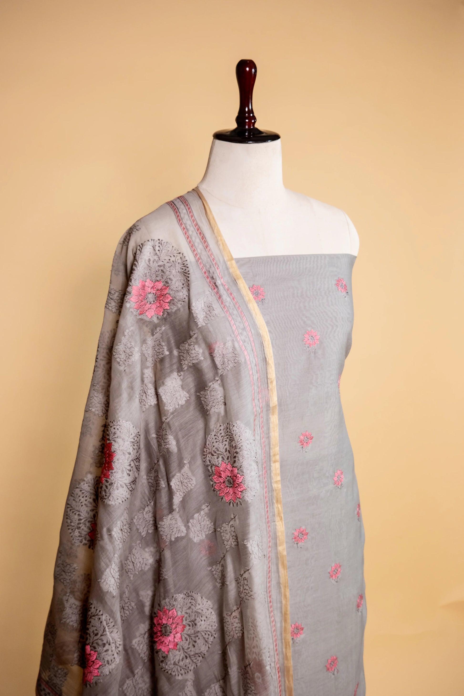 Seeking a breezy yet elegant ethnic look? This Light Grey Embroidered Mul Cotton Suit showcases beautiful multicolor resham floral thread work on the kurta. The ensemble is enhanced by a richly embroidered floral dupatta with tassels and a comfortable cotton bottom—ideal for festive occasions and stylish summer outings.